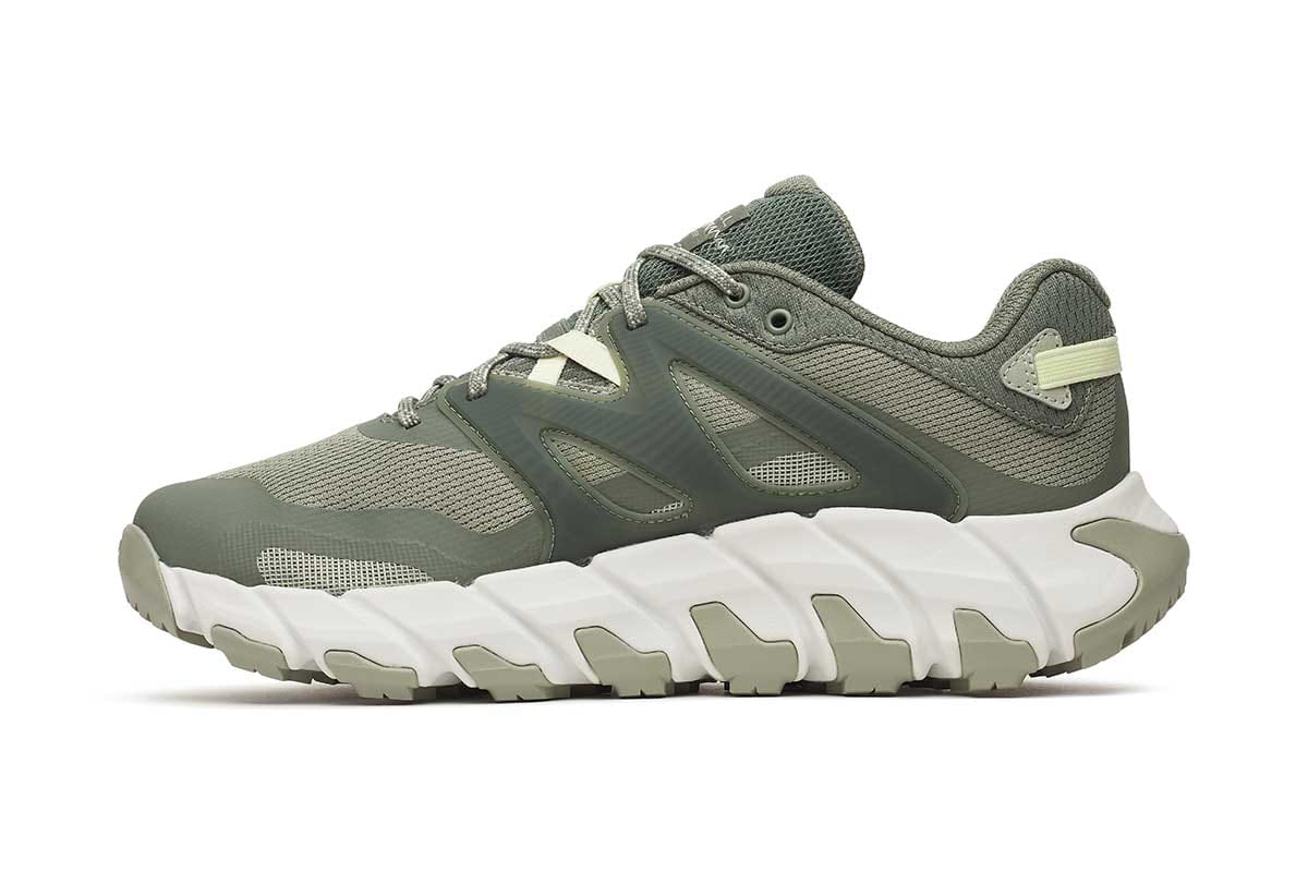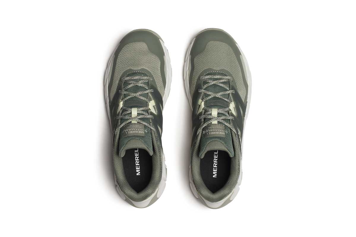 Lahek, zračen pohoden čevelj namenjen različnim aktivnostim na prostem. Zgornji del sestavljajo zračni tekstilni predeli v kombinaciji s sintetičnimi materiali, ki nudijo izjemno zračnost in udoben oprijem stopala. Lahka EVA pena v vmesnem podplatu nudi stabilnost in udobje na vsakem koraku. Flexconnect tehnologija v podplatu omogoča boljši stik s podlago po kateri stopamo. Merrell Sticky rubber guma na podplatu omogoča odličen oprijem na različnih površinah. Vezalke, mrežasta podloga in vložek so narejeni iz 100% recikliranih materialov.