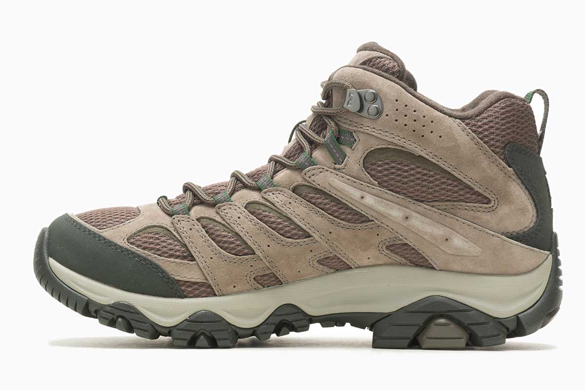 Nov, izboljšan Moab 3 nudi še več udobja, stabilnosti in še boljši oprijem podplata s podlago po kateri hodimo. Polvisok pohodni čevelj je zaradi lahkotnosti primeren za različne aktivnosti na prostem. Zgornji del je sestavljen iz Waterproof  vodoodbojne membrane in kombinacije usnja s stranskimi zračnimi tekstilnimi predeli. Merrellova zračna blazina »Air Cushion« v peti blaži udarce ter poskrbi za celodnevno udobje na vsakem koraku. Vmesni podplat vsebuje novo EVA peno, ki nudi dodatno blaženje in udobje. Nova Vibram guma na podplatu omogoča odličen oprijem na različnih podlagah. Mrežasta podloga in vezalke sta narejeni iz 100% recikliranih materialov.