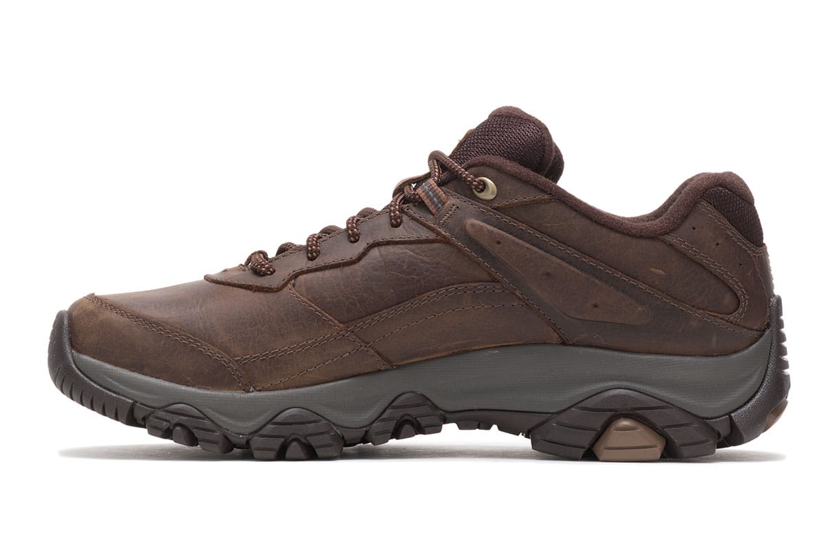 Usnjen moški večnamenski pohodni čevelj je primeren za različne aktivnosti na prostem. Merrellova zračna blazina »Air Cushion« v peti blaži udarce ter poskrbi za celodnevno udobje na vsakem koraku. Vsebuje EVA odstranljiv vložek. Vibram TC5+ guma na podplatu omogoča odličen oprijem na različnih podlagah. Mrežasta podloga in vezalke sta narejena iz 100% recikliranih materialov.