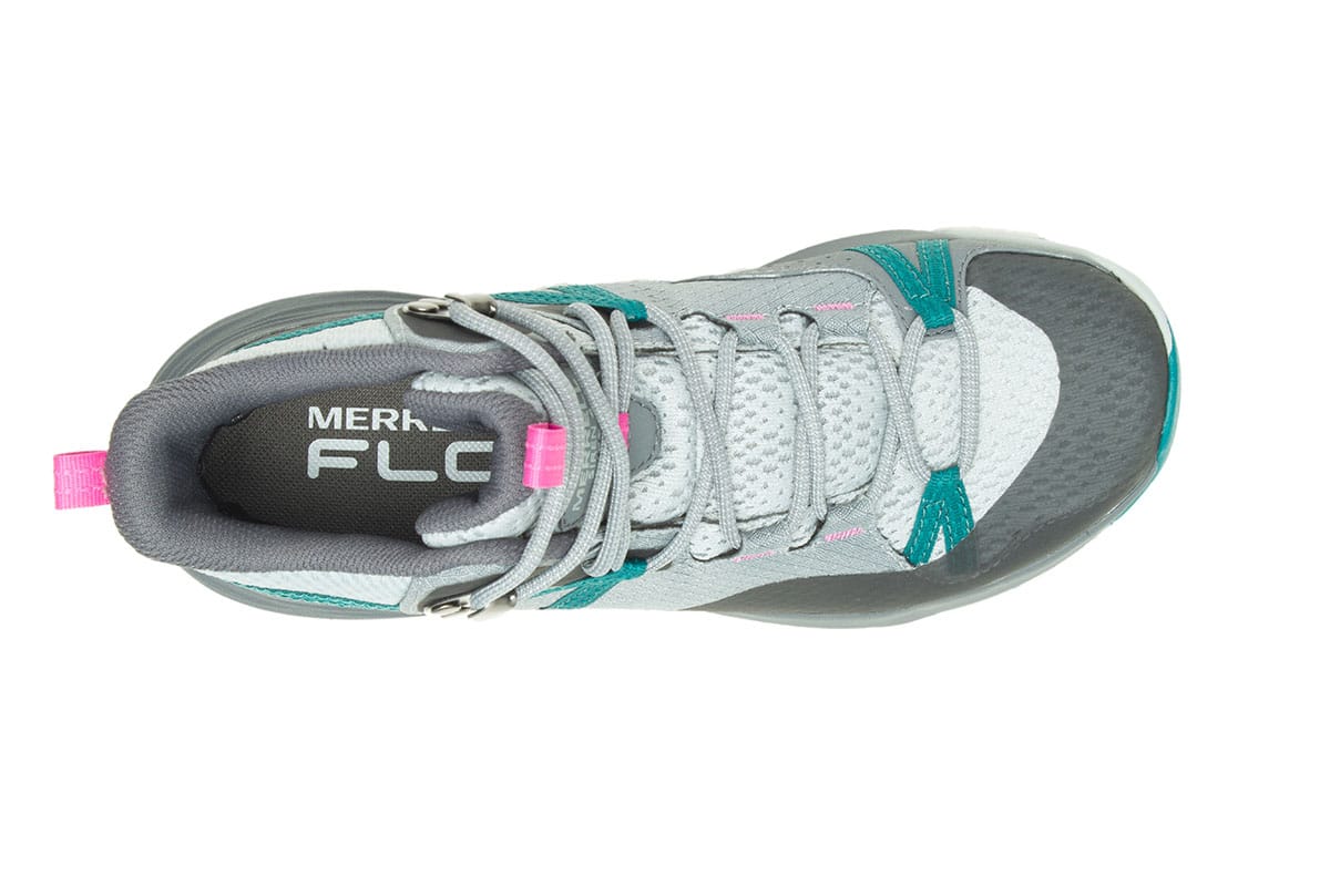 Nova izvedba polvisokega ženskega pohodniškega čevlja nudi če več udobja in blaženja, namenjana je različnim aktivnosti na prostem. Zgornji del sestavlja Gore-Tex vodoodbojna membrana v kombinaciji s TPU materialom in stranskimi zračnimi tekstilnimi predeli. Merrellova zračna blazina Air Cushion v peti blaži udarce in nudi udobje skozi ves dan. V vmesnem podplatu je dodana nova Float Pro, ki zagotavlja več blaženja in udobja na vsakem koraku. Pod prsti je vstavljena nova Rock Plate torzijska plošča, ki nudi dodatno stabilnost za varen korak pri gibanju v naravi. Vibram TC5+ guma zagotavlja odličen oprijem podplata, ki se prilagaja podlagi. Qform2 tehnologija poskrbi za dodatno oporo in nevtralizira hojo na X. Mrežasta podloga in vezalke so narejeni iz 100% recikliranih materialov.