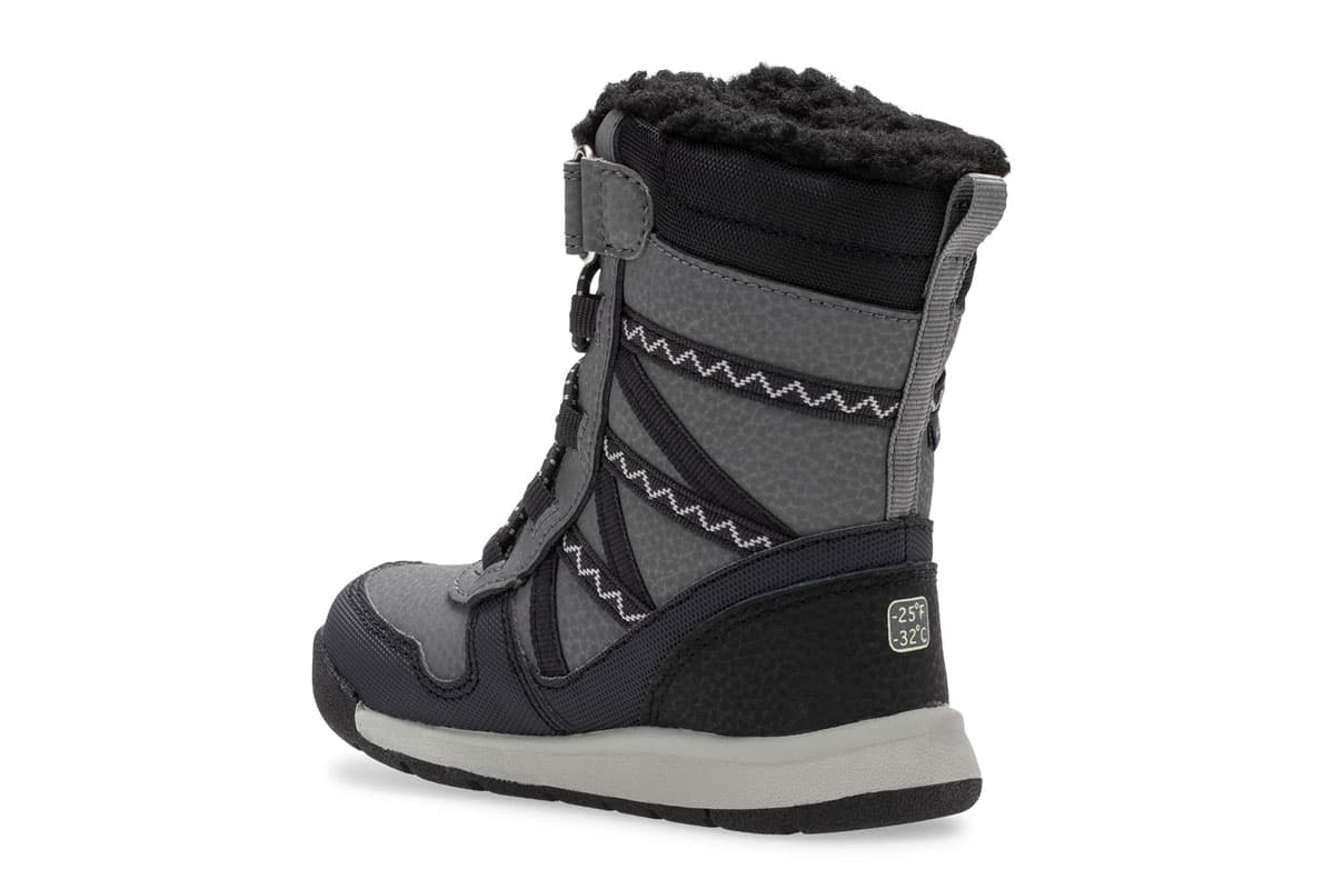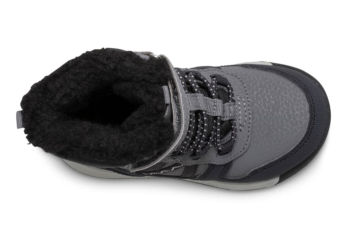 Visok otroški zimski čevelj je primeren za raziskovanje zimskih radosti za najmlajše. Zgornji del sestavlja pravo usnje in sistem zavezovanja z vrvico ter velcra paščkom. Snow Crush model ima vgrajeno vodoodbojno membrano in dodatno toplotno izolacijo, ki ščitita stopala pred mokroto in mrazom v hladnejših mesecih. Podloga je antibakterijska in preprečuje nabiranje slabega vonja v čevlju. Guma na podplatu ne pušča sledi in omogoča odličen oprijem na različnih podlagah. Velikosti od 21 dalje.
